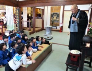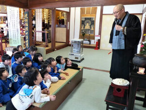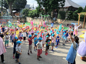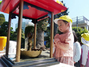 本園は浄土宗東源寺の境内にあり日々の保育の中で仏教精神に基づき感謝する心を養い、くつろいだ雰囲気の中で情緒を安定させ、子どもの年齢・発達・性格に応じた保育を進めてまいります。