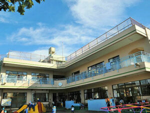 保育室は一階・二階とも、広い遊び場になったり、それぞれの保育室に仕切られたりと、多用に遊びや生活ができるよう設計されています。 市街地に立地するため敷地は限られておりますが、鉄筋2階建ての園舎は屋上も遊び場スペースになっており、夏のプール遊びも屋上でできるよう設置されております。また、夏の猛暑にも対応できるよう、冷房も完備しています。