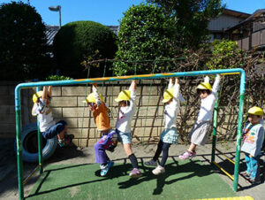 毎日、同年齢または異年齢の友達と一緒に生活したり遊んだりする中で、楽しく心地良い生活が送れるようきまりがある事に気付き、我慢したり自分を主張したり相手を思いやったりする事ができるよう助言してゆきます。