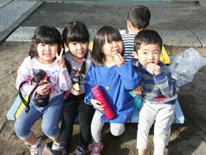 お家の人や地域の人たち、また中学生や高校生たちとの交流や参加の輪を広げながら共に子育てをしてゆきます。